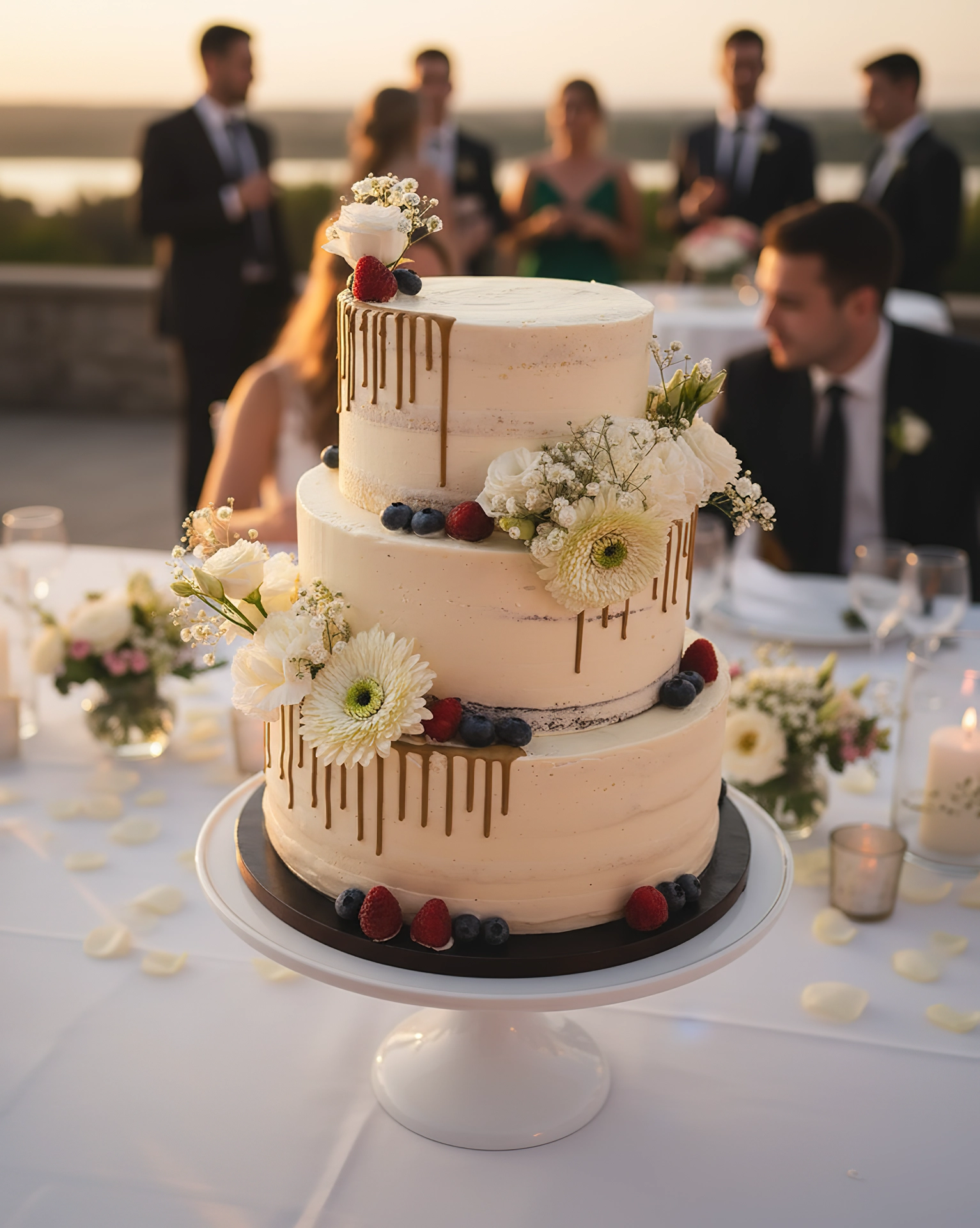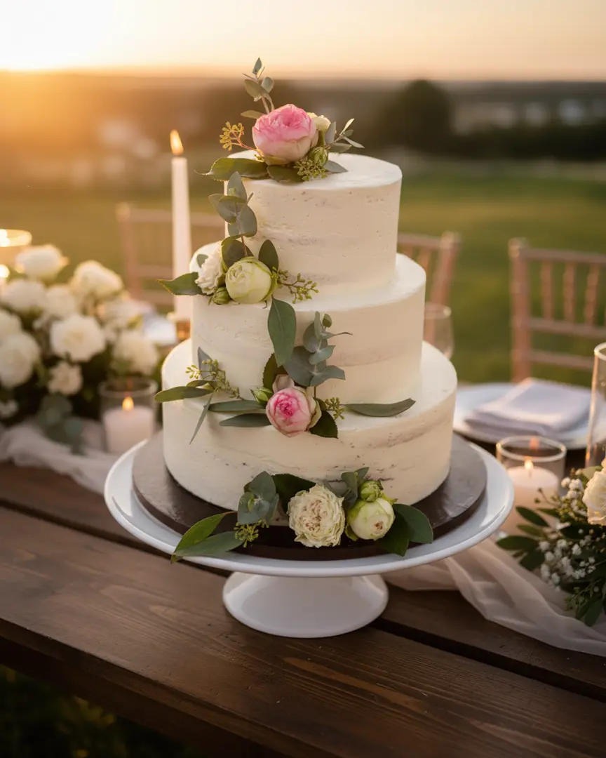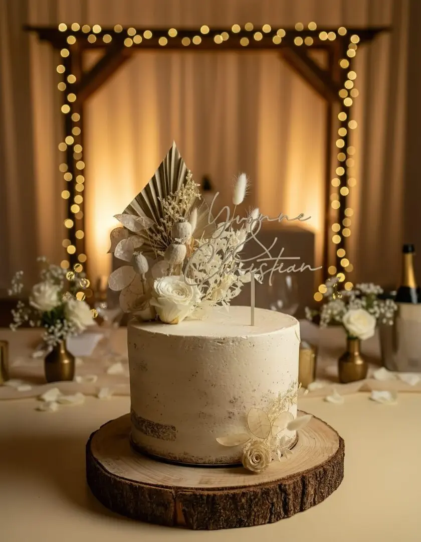Echte Handwerkskunst, unverfälscht: Meine Hochzeitstorten sind auf den Bildern zu 100 % original. Für eine hochwertige Präsentation habe ich ausschließlich die Hintergründe mithilfe von KI veredelt – die Torten bleiben in Form, Farbe und Details unverändert.